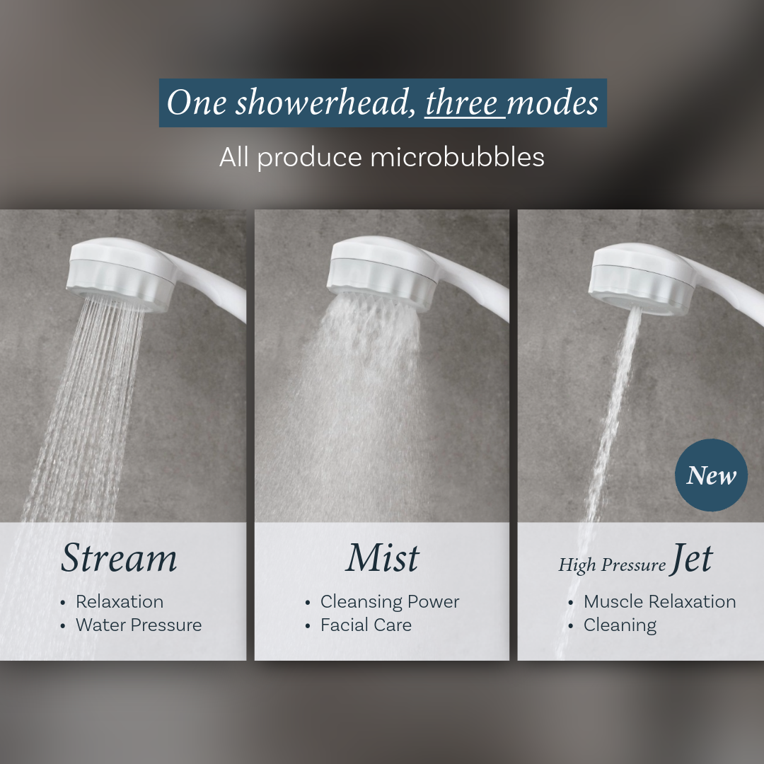 The Microbubble Showerhead 3.0 keeps everything you love about 2.0—the luxurious Mist mode with 920 million microbubbles per minute and the refreshing Stream mode—while introducing our most-requested upgrade: Jet spray mode. This powerful new setting transforms your shower into a personal spa, delivering targeted pressure for deeper muscle relief, invigorating scalp massage, and even making bathroom cleaning effortless.